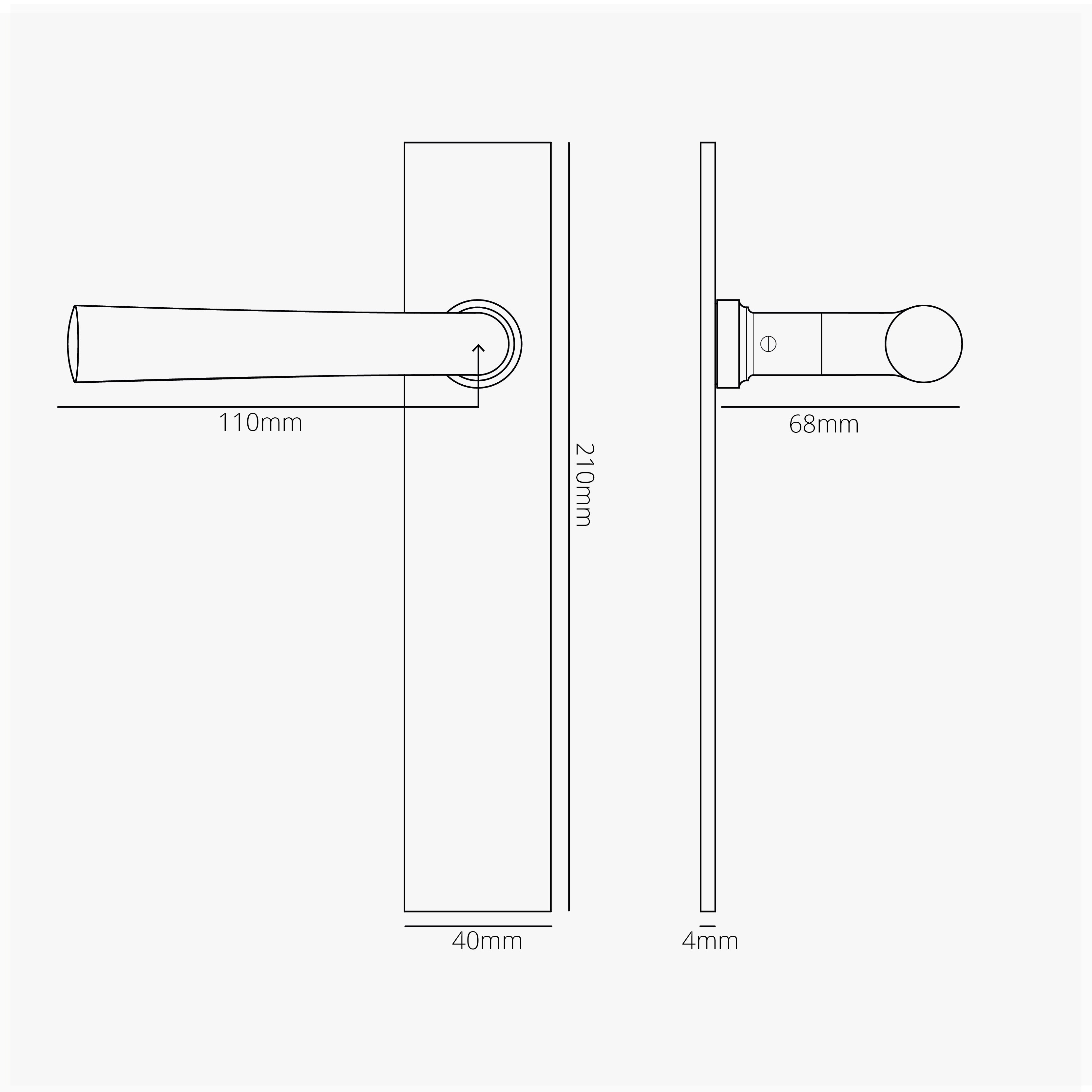 Der Türgriff Apsley hat eine schlanke Form, die konisch zuläuft. Diese Version mit langem Niedrigprofilschild verleiht dem Griff einen modernen Charakter.