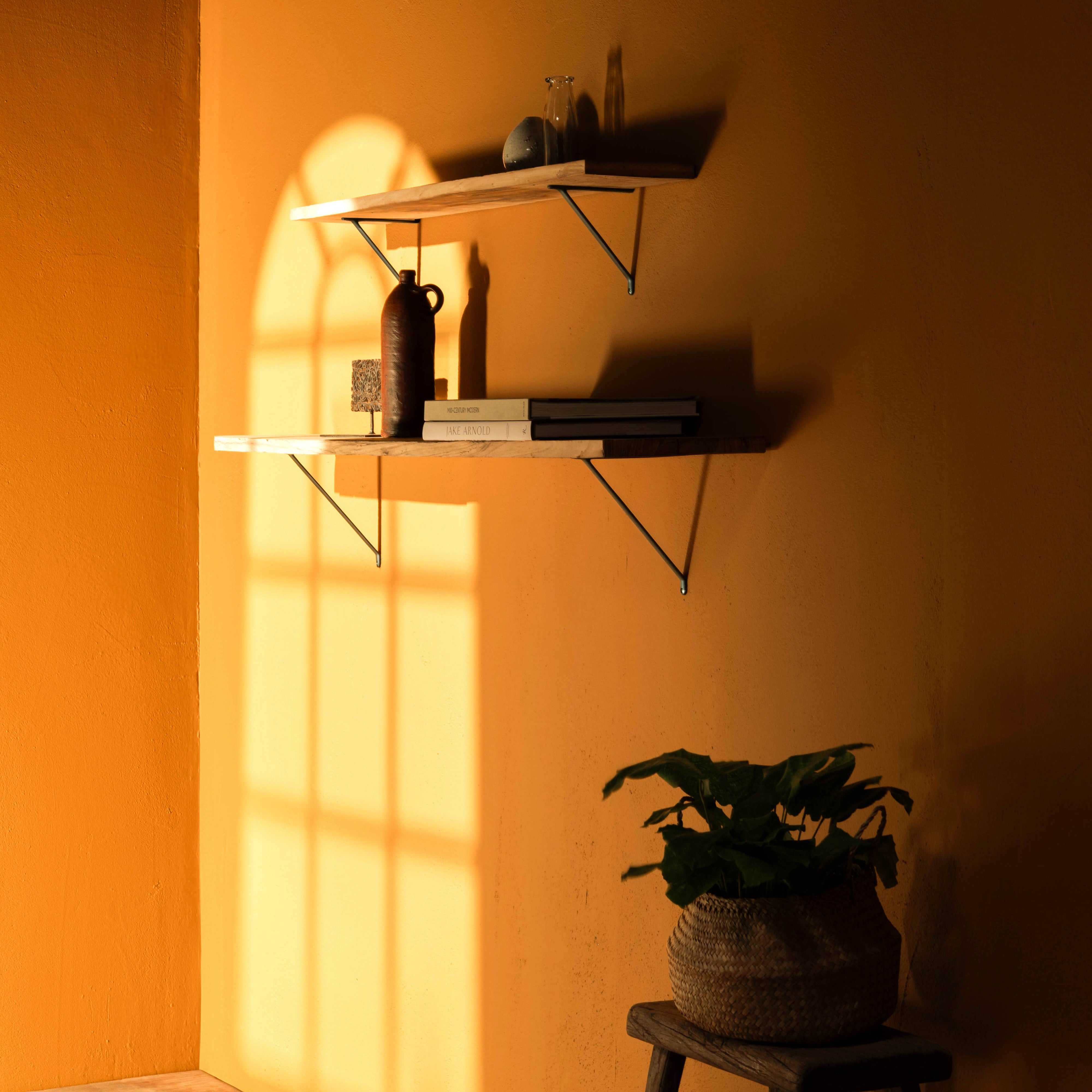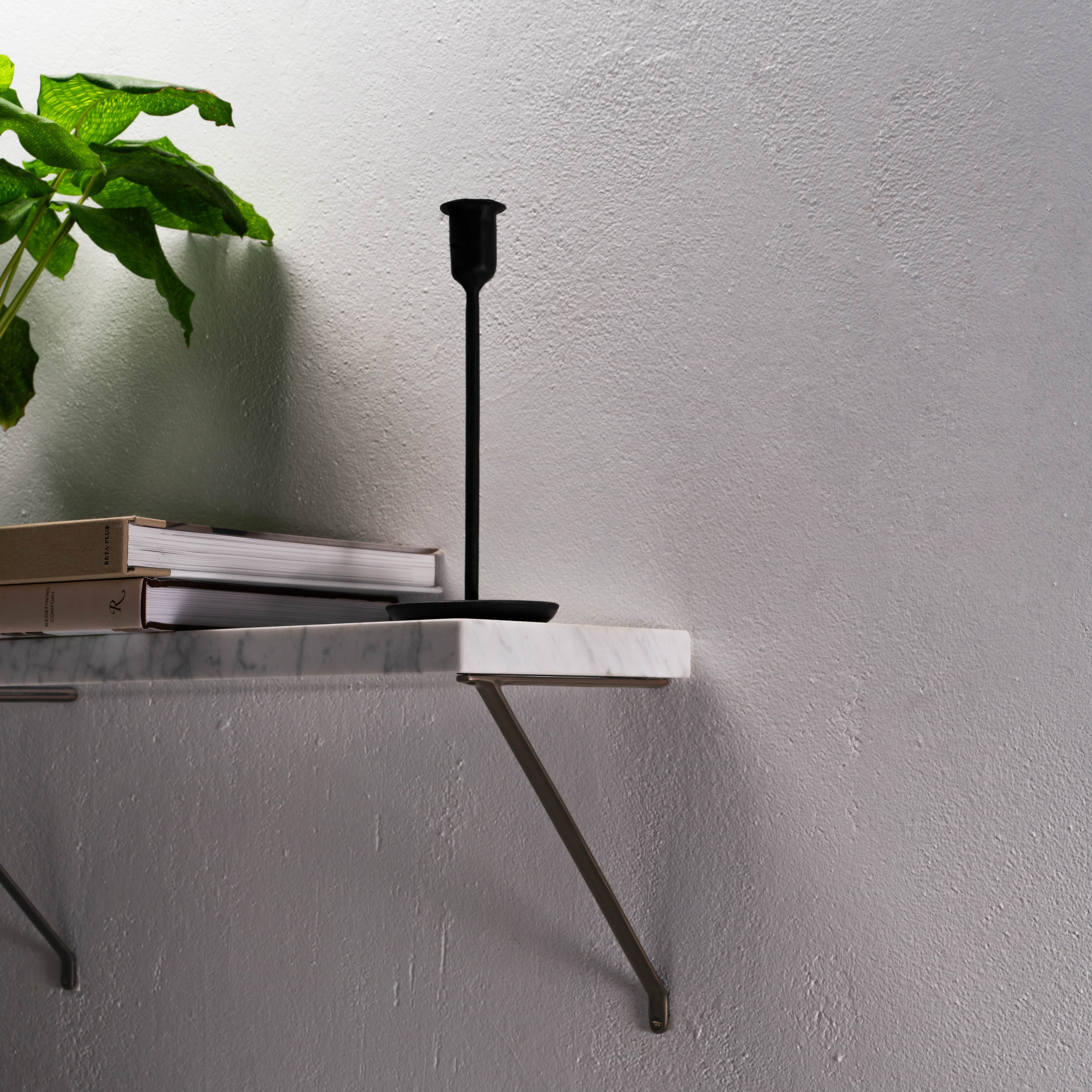 Unsere Brixton-Regalhalterung ist aus einem einzigen Stück robusten, massiven Messings gegossen und sitzt bündig an der Wand. Die Regalhalterung hat eine Lastgrenze von 40 kg.