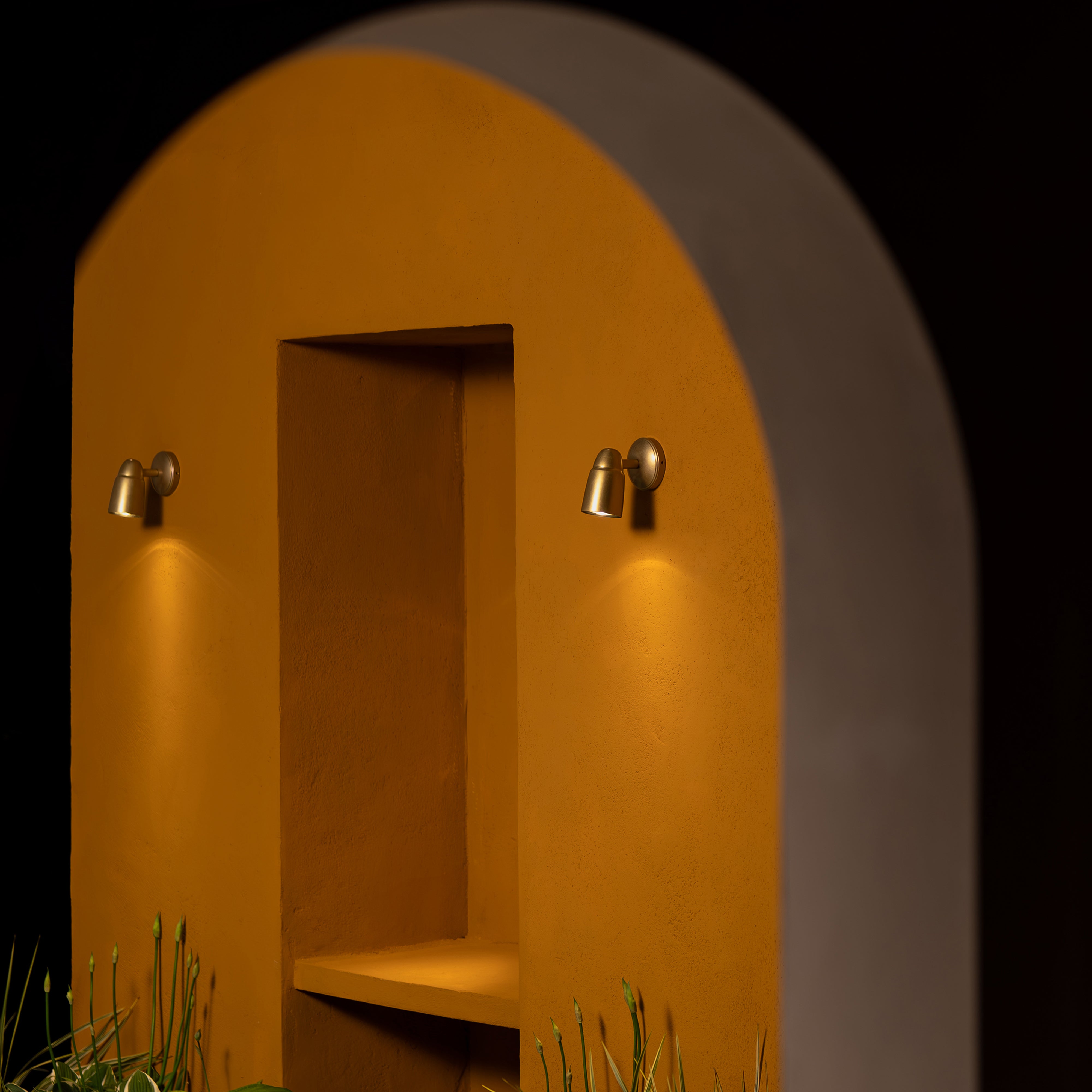 Unsere bündig an der Außenwand montierte Strahler produzieren einen Lichtkegel, der nach unten gerichtet ist, um Gartenwege, Blumenbeete und dergleichen von oben zu beleuchten.