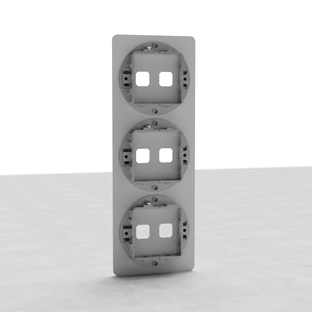 Dieser lackierbare Dreifachrahmen mit sechs Aussparungen ist mit all unseren Kipphebelschaltern kompatibel. Wenn Sie einen Dimmerschalter mit Drehknopf einbauen möchten, wählen Sie bitte unseren vertikalen Dreifachrahmen 3x in der korrekten Ausführung.