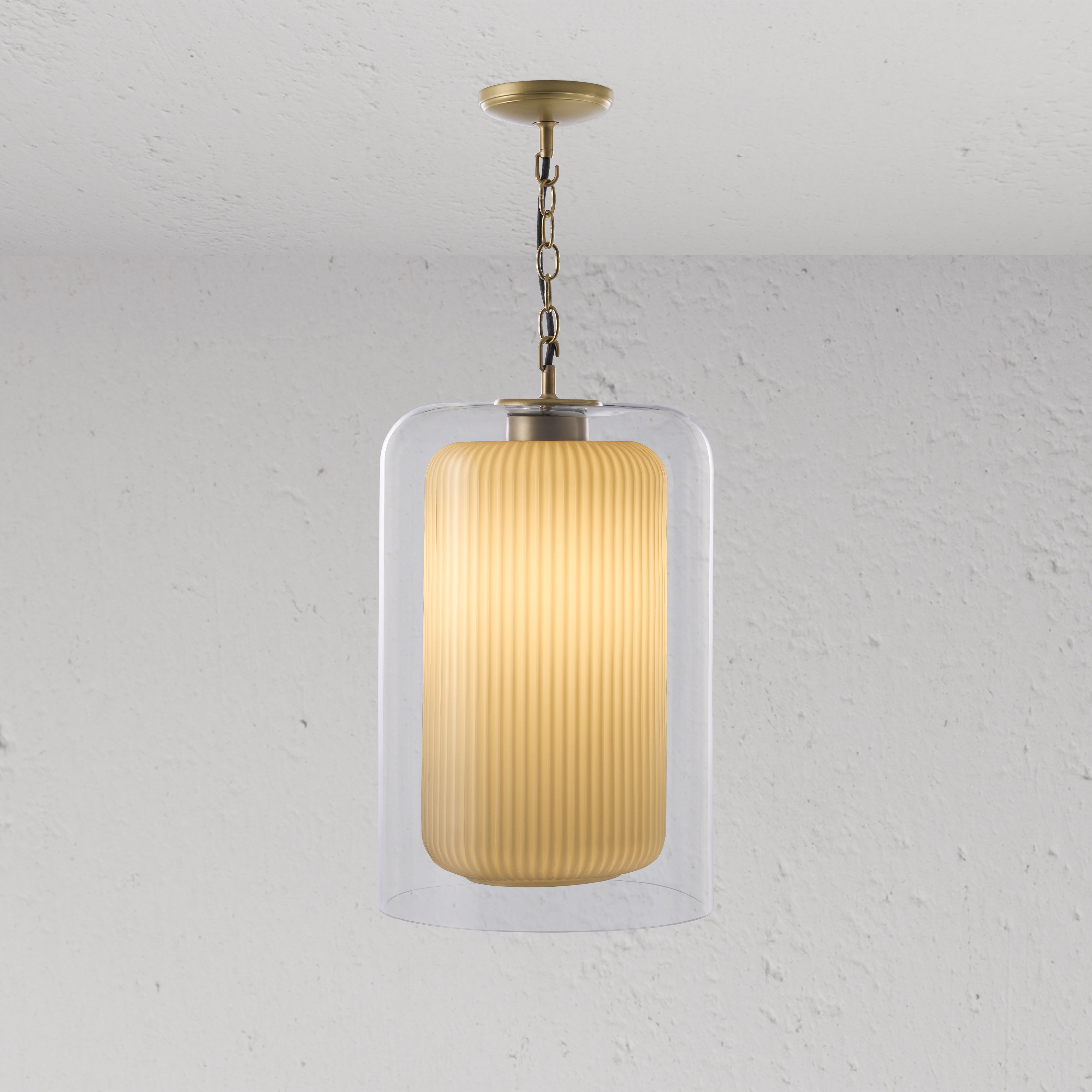 Unsere Pendelleuchte Windsor zeichnet sich durch einen doppellagigen Glasschirm aus: ein innerer Schirm aus geriffeltem Opalglas kombiniert mit einem zweiten, äußeren Schirm aus Klarglas.