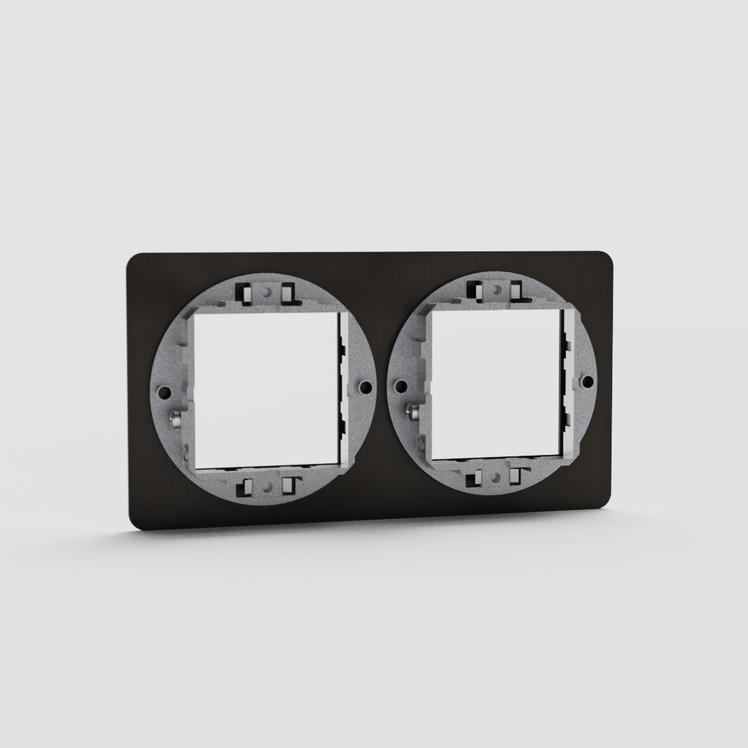 Dieser Doppelrahmen in Bronze mit einer 45-mm-Aussparung ist mit allen unseren Wippen oder 45-mm-Steckdosenmodulen kompatibel. Achten Sie darauf, dass Sie die schwarzen Versionen wählen.